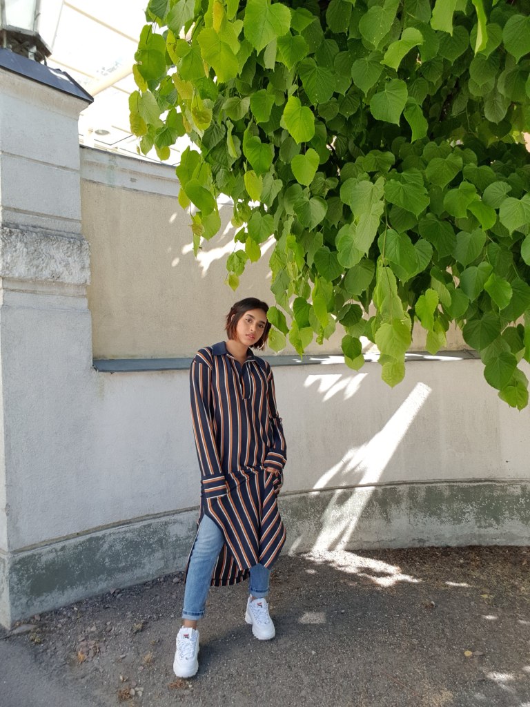 I didn’t know what to call this piece. I couldn’t understand if it was a dress or something meant to wear with pants, so I figured why not do both? I liked being able to play around with it, showing how different the aesthetic can be with some minor changes. It was also fun finding locations that matched the outfits too. One being more light and airy while the other felt more modern and sophisticated.